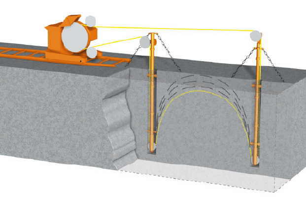• Hydraul. Guillotine-Zwinge zur Montage der Bohrstangen